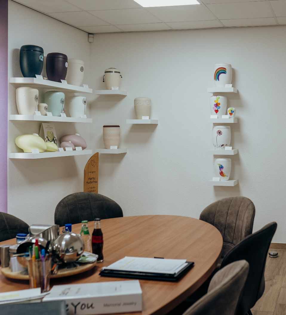 Im Ausstellungsraum vom Bestattungshaus Edwin Otten finden Sie ein ausgesuchtes Sortiment, das Ihren Vorstellungen gerecht wird. Für die Beratung und die Information zu den Möglichkeiten stehen wir Ihnen selbstverständlich zur Seite.